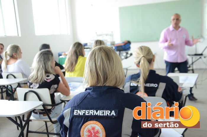Presidente do COREN durante curso para profissionais de enfermagem em Sousa (foto: Charley Garrido)