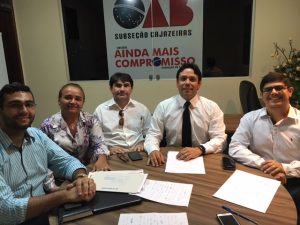 A Diretoria da OAB Cajazeiras, juntamente com o advogado Juramir Oliveira, representante local da Comissão Estadual de Combate a Morosidade Processual, protocolou nesta semana, pedido de providências dirigido ao Presidente da Comissão Estadual de Combate a Morosidade Processual, advogado Assis Almeida para tentar acelerar a designação das audiências na Vara do Trabalho de Cajazeiras.