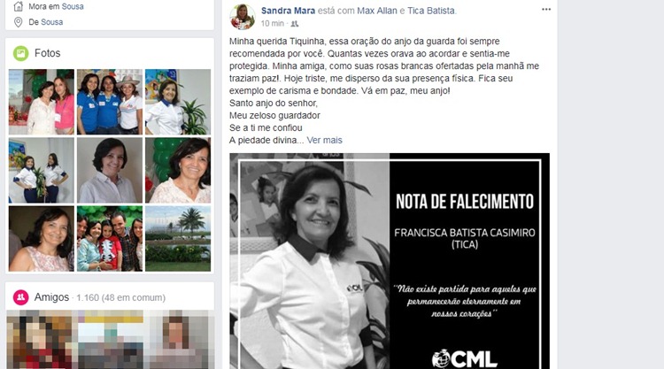 Nas redes sociais, amigos e familiares lamentaram a morte de Tica que era bastante querida por todos os alunos e funcionários do CML:
