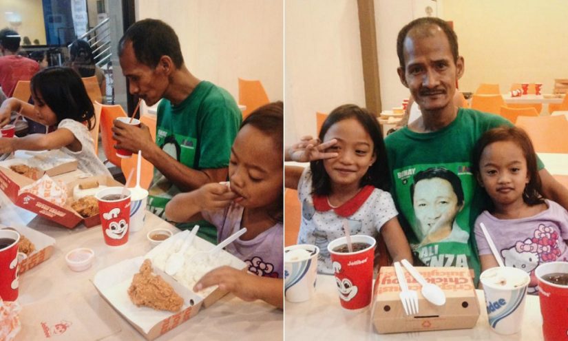 O portal de notícias ABS-CBN News revelou a história por trás da fotografia. Ele levou as filhas para o restaurante naquela tarde para comemorar a formatura do jardim de infância de uma das meninas, de seis anos. Porém, como ele não tinha dinheiro para pagar sua comida, satisfez sua fome apenas observando as meninas.