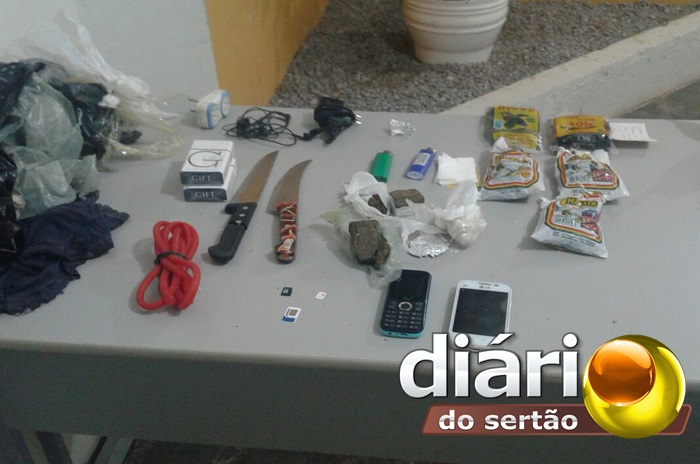 Agentes do CEA em Sousa acham pacote com drogas, celulares e facas dentro de unidade prisional; objetos foram arremessados de madrugada