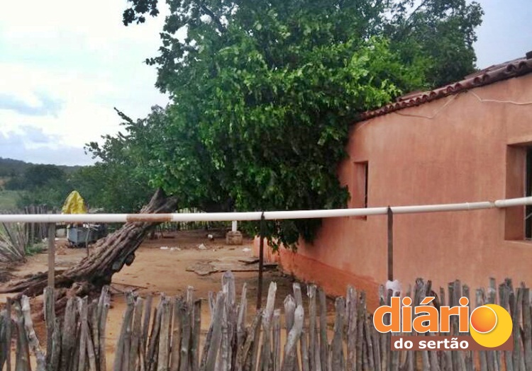 A chuva acompanhada de ventos fortes que atingiu todo o Sertão da Paraíba nesta terça-feira (13) destelhou casas e derrubou árvores no sítio Águas Belas, zona rural do município de São Domingos de Pombal.