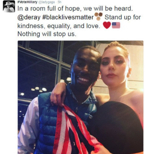 Lady Gaga, outra que foi às ruas para defender o voto em Hillary, escreveu: “Num lugar cheio de esperança, seremos ouvidos. Lute pela bondade, igualdade e amor. Nada vai nos deter”
