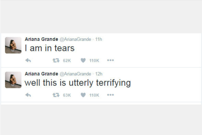 Ariana Grande disse no Twitter: “Isso é absolutamente terrível” e “Estou chorando”