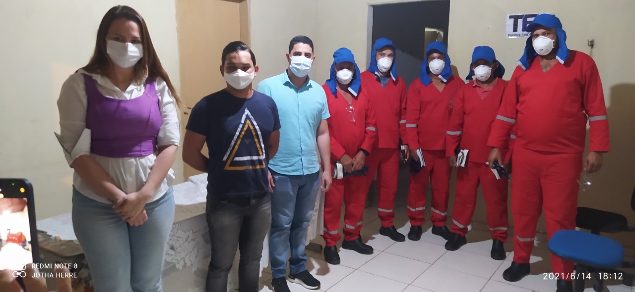 Na segunda-feira (14), a prefeita Denise Bayma, atendendo ao convite do representante da empresa, esteve participando da solenidade de entrega dos Equipamentos de Proteção Individual (EPI) aos profissionais que atuam neste serviço, incluindo o fardamento com faixa reflexiva.