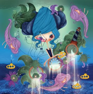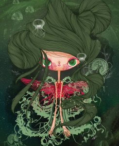 Há quatro anos, Juliana trabalha exclusivamente com arte em desenhos, ilustrações, pintura e colagem digital. “Minhas ilustrações sempre trazem elementos de ambientes fantásticos misturados com quimeras, cores vivas e ares de magia, permeando o universo dos sonhos e da fantasia, retratados sempre pelas Personagens de Olhos Grandes”, descreve.
