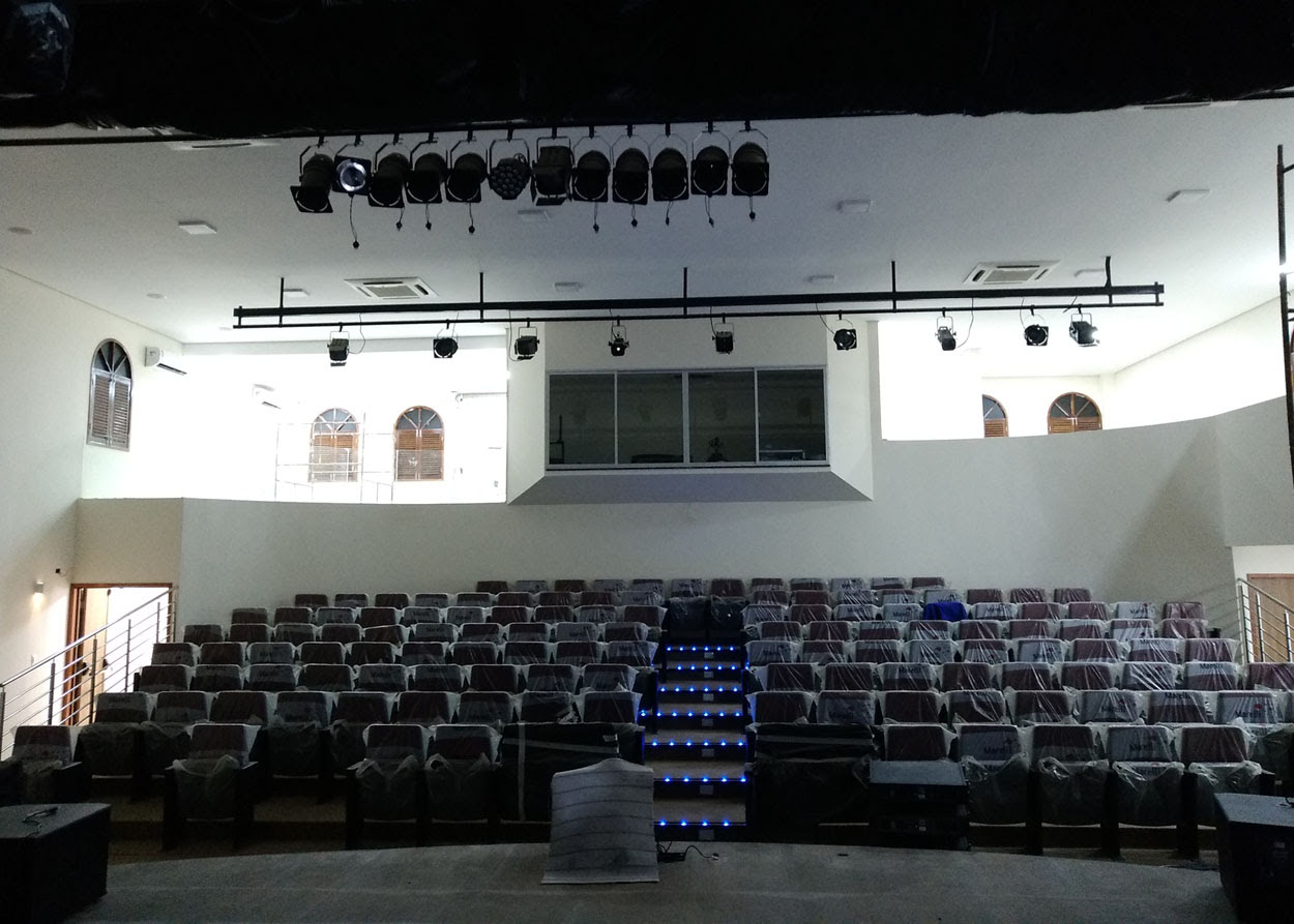 Os principais serviços em execução foram: demolições, alvenaria, estrutura, revestimento de fachada, cerâmico e acústico, mudança de pisos e pintura interna e externa, substituição na estrutura de coberta, instalações hidrossanitárias, drenagem de águas pluviais, instalações elétricas, louças e metais e inserção da instalação de combate a incêndio, subestação, gerador, urdimento, sonorização, tratamento acústico, portas acústicas, mobiliário de assento para o público, tratamento de jardim e empraçamento.