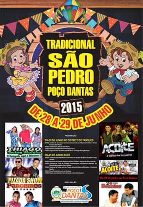 A Prefeitura de Poço Dantas, através do prefeito José Gurgel Sobrinho (Dedé de Zé Cândido), anunciou nesta sexta-feira (26) a programação do tradicional São Pedro de Poço Dantas.
