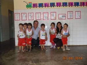 Na Creche Municipal Géssica Alves Martins, o prefeito entregou uniforme completo personalizado para as crianças do município.