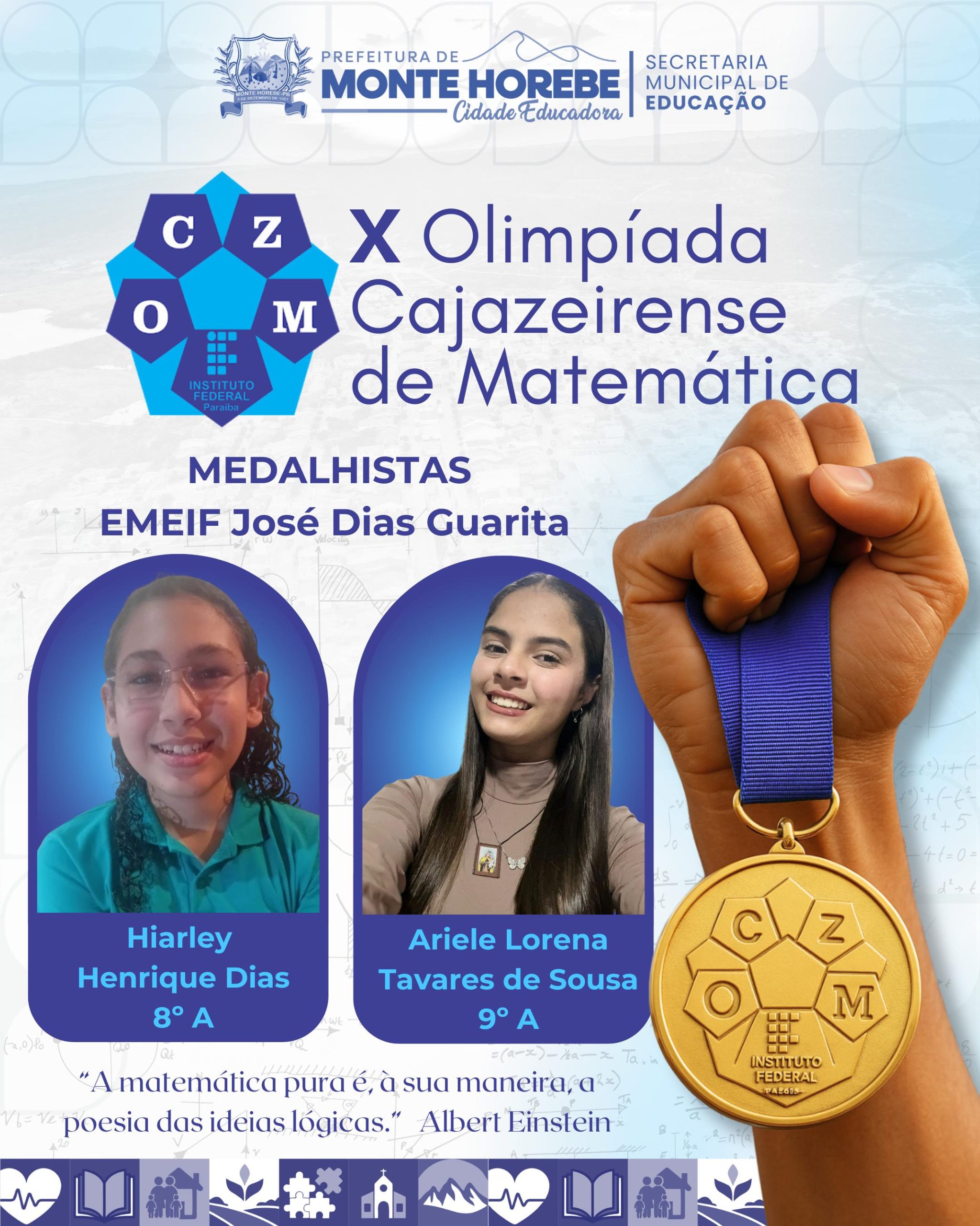 A cidade de Monte Horebe, conhecida como “Cidade Educadora”, celebra mais uma conquista na área da educação. Alunos da Escola Municipal de Ensino Infantil e Fundamental (EMEIF) José Dias Guarita foram premiados na X Olimpíada Cajazeirense de Matemática (OCZM) de 2025, uma das mais importantes competições do estado.