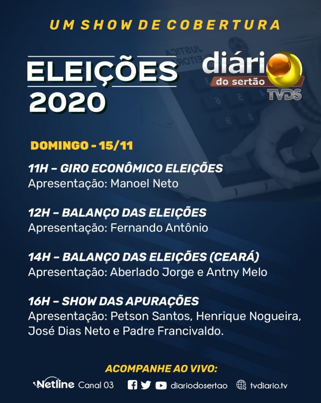 A cobertura ‘na marca da exclusividade’, continua às 16 horas, com Show das Apurações com Petson Santos, Henrique Nogueira, José Dias Neto e Padre Francivaldo.