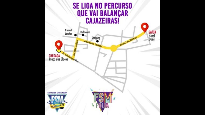 A Faculdade Santa Maria vai cair na folia nesta quinta-feira, dia 28, com o evento “FSM Folia”, um percurso que os foliões farão até a “Praça dos Blocos”, no Centro.