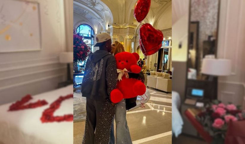 Nos registros, o casal aparece abraçado, com uma legenda muito fofa e um cenário impecável, com ursos de pelúcia, coração com pétalas de flores, jóias e um balão com a palavra “love”.