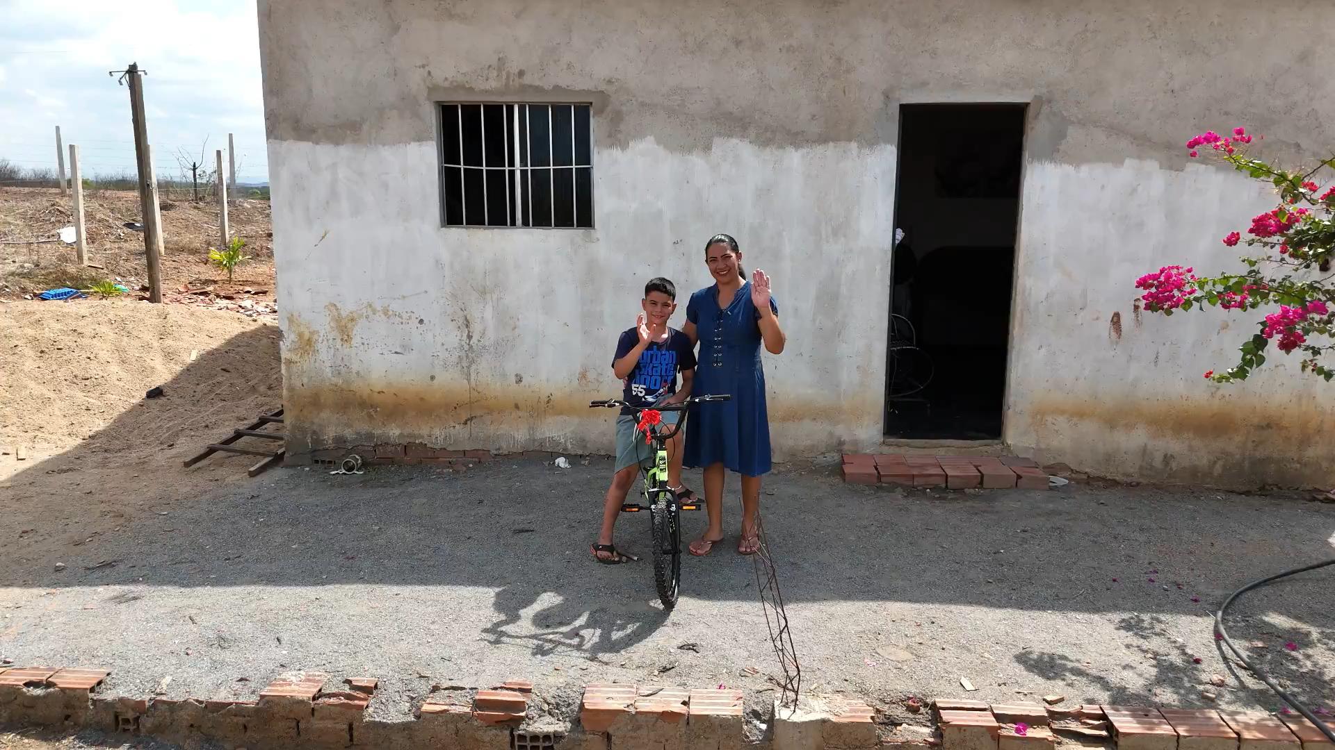 Abraços de alegria definem a felicidade da família contemplada com uma bicicleta Colli novinha, presente do Lojão Rio do Peixe e que a TV Diário do Sertão cobriu tudo de pertinho.