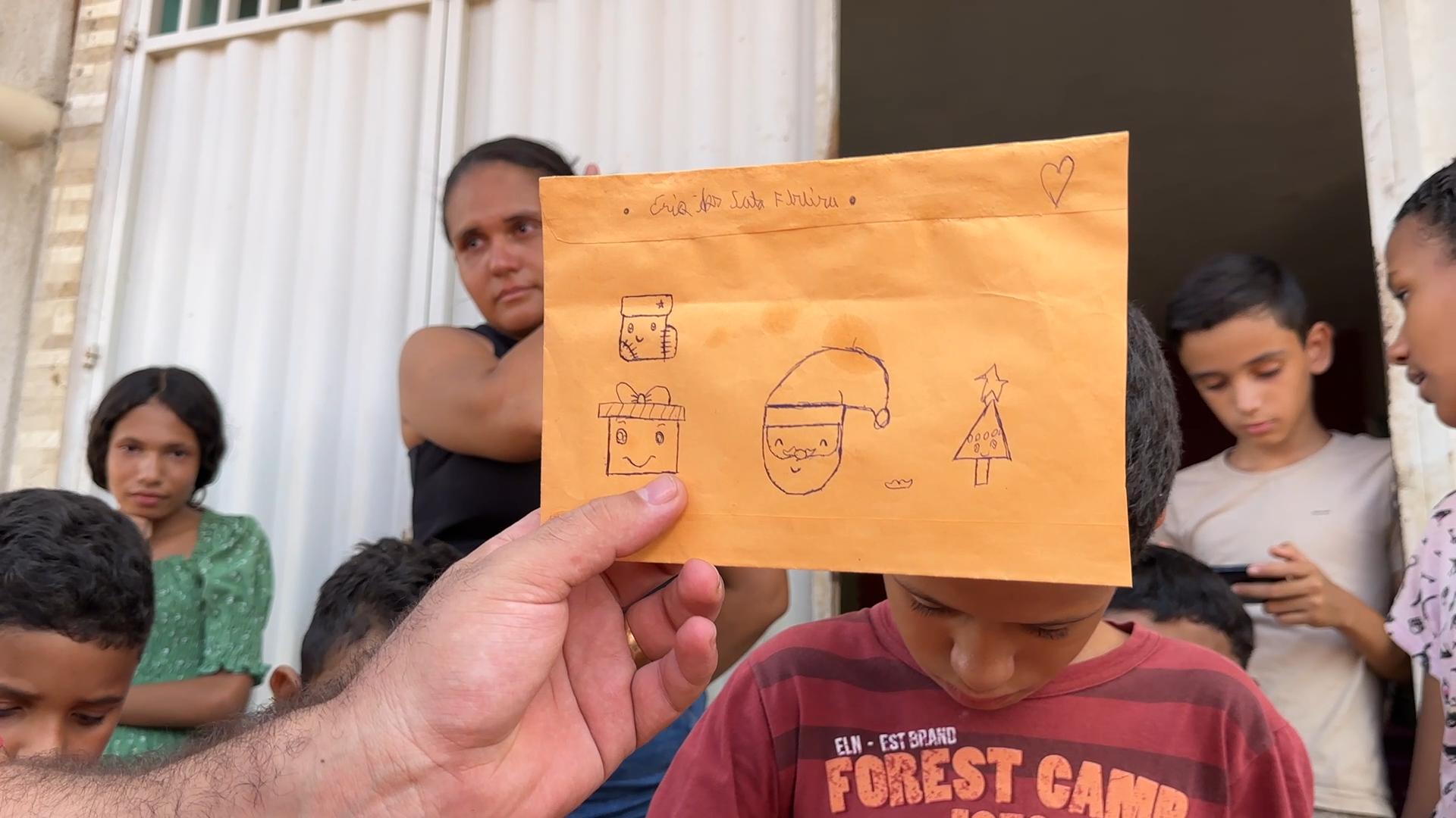 A primeira parada foi na zona rural, na casa do pequeno Emanuel Calebe, que escreveu sua cartinha com a ajuda da sua mãe Elaine. O presente se tornou mais especial porque chegou nesta quarta-feira, dia 17 de dezembro, aniversário de Calebe.