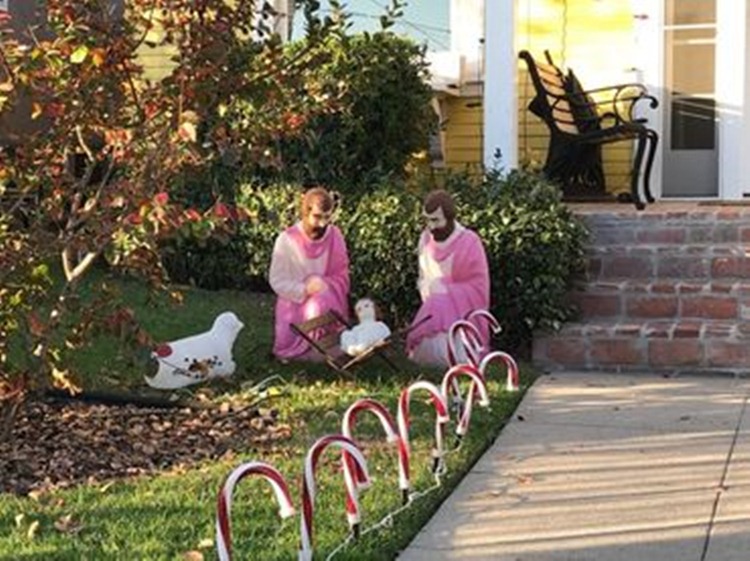 Após ele publicar uma imagem no Twitter de dois homens com túnicas rosas olhando para o menino Jesus no que chamou de “presépio gay”, várias pessoas começaram a fazer campanha por mais imagens como essa na frente das casas.