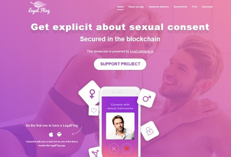De acordo com Arnold Daniels, criador do app, a ideia foi impulsionada por planos da Suécia para fortalecer sua lei contra estupro, que vai exigir consentimento explícito antes das relações sexuais. O lançamento do LegalFling deve acontecer em três semanas. Ele usará a tecnologia blockchain, por trás da criptomoeda bitcoin.