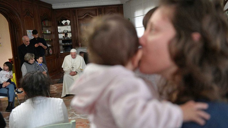 Pontífice visitou casa que permite a moradia da mãe com o filho