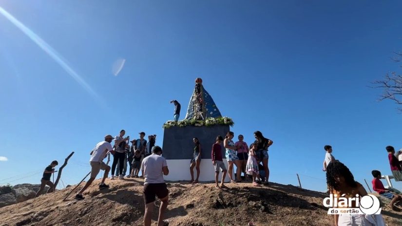 Romeiros de várias partes do Nordeste enfrentam longas caminhadas para visitar o topo da serra do Distrito de Boqueirão de Piranhas para rezar diante da estátua da padroeirra dos Brasil