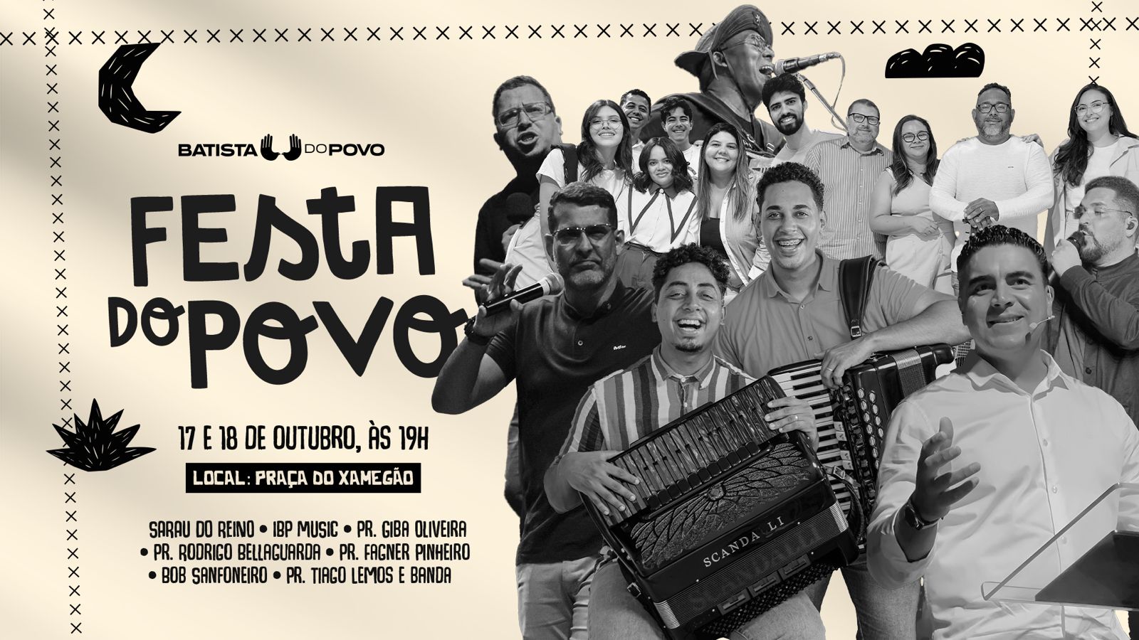 A Praça do Xamegão, em Cajazeiras, será o palco da “Festa do Povo” nos dias 17 e 18 de outubro. Organizado pela Igreja Batista do Povo, o evento gratuito promete reunir fiéis e a comunidade regional em duas noites de graça, oração e fé, com início previsto para as 19h.