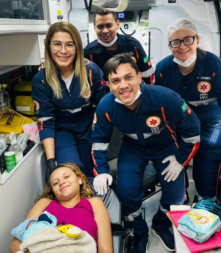 Diante da gravidade e da precocidade da gestação, a equipe – formada por Dr. Kassio, pelas enfermeiras Valéria Savanarolly e Beatriz Alencar, e pelo condutor socorrista Ronaldo Gomes- iniciou o transporte imediato para uma unidade hospitalar de referência. No entanto, a natureza não esperou o tempo do trajeto. O nascimento ocorreu dentro da ambulância, exigindo da equipe um preparo técnico rigoroso para garantir a vida da mãe e do bebê.