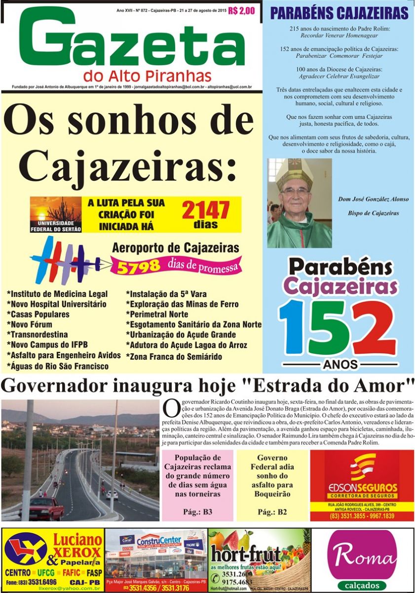 Por José Antonio O governador Ricardo Coutinho deverá estar em Cajazeiras no próximo dia 18 de março para presidir mais uma plenária do Orçamento Democrático, versão 2016. Quem participou da plenária do ano passado, as demandas apresentadas para o município de Cajazeiras não tiveram a repercussão que se esperava e o que foi solicitado ficou […]