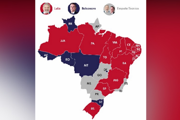 O levantamento feito pelo GLOBO, que compilou todas as pesquisas disponíveis mostra que Lula está à frente de Bolsonaro em 15 estados, sendo que no Nordeste, ele é líder em todos os 09 Estados, além de São Paulo e Minas Gerais, maiores colégios eleitorais do País, Amazonas, Rio Grande do Sul e Tocantins.
