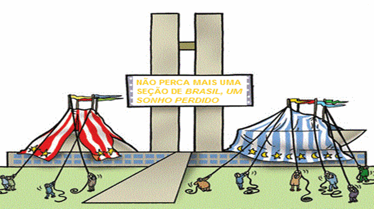 “O espetáculo não pode parar”. Berra, a plenos pulmões, em um roto e decaído picadeiro, o mestre de cerimônia de um circo de empanada esburacada e em cuja fachada, com acanhadas e raras luzes piscantes, ainda se vislumbra os rabiscos das inscrições que lhes dão titularidade: “democracia brasileira”.