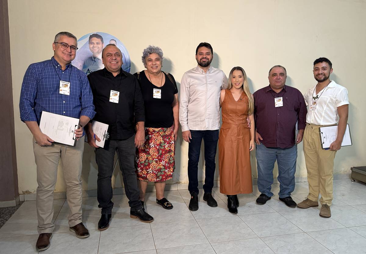 Petson Santos, Adjamilton Pereira, Mariana Moreira e Daniel Dantas compuseram o júri do São João de Ruas 2025 em Cachoeira dos Índios. Eles estão na foto com prefeito Alyson Francisco e a primeira-dama, Patrícia Almeida (Foto: Diário do Sertão)