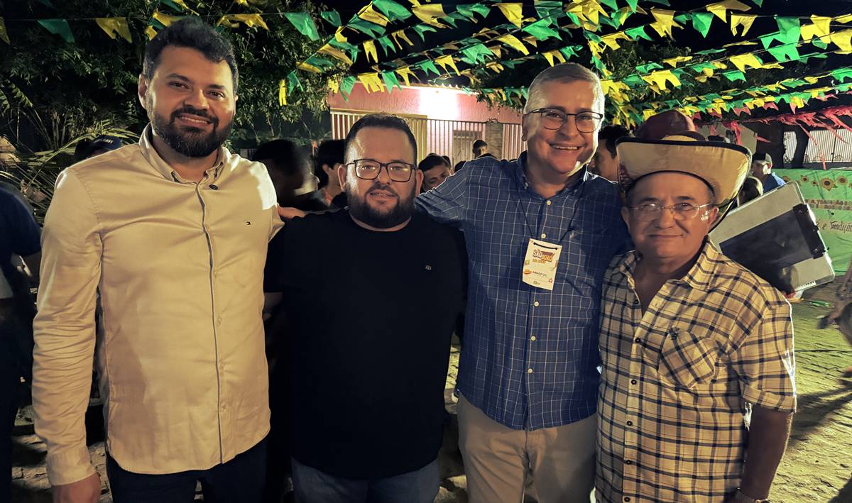 Prefeito Alyson Francisco; vice-prefeito Ramon Izidro; radialista Petson Santos e o ex-prefeito de Cachoeira dos Índios, Bodinho (Foto: Diário do Sertão)