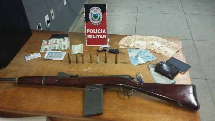 Ao realizarem uma busca no automóvel, os policiais também localizaram o carregador do fuzil.