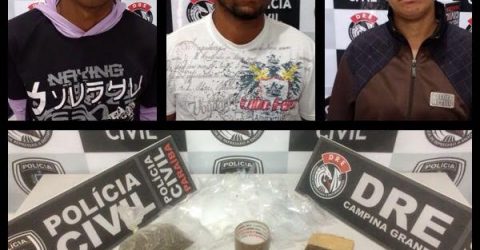 Trio é suspeito dos crimes de tráfico drogas e porte ilegal de arma.
