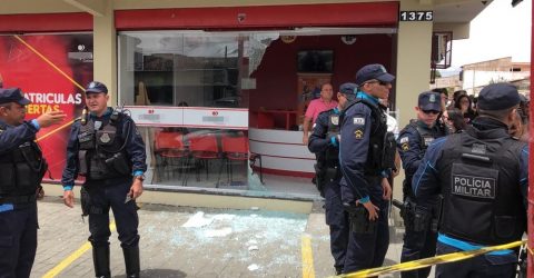 Vítima foi abordada por três suspeitos armados no momento em que chegava ao estabelecimento.