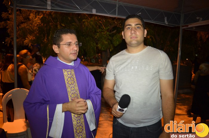 O padre José Elias, acompanhado por uma multidão de fiéis carregou o Santíssimo Sacramento (hóstia Consagrada). Confira aqui
