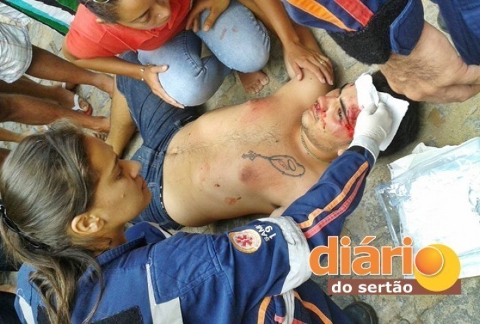 O condutor da moto sofreu escoriações pelo corpo e foi encaminhado até o Hospital