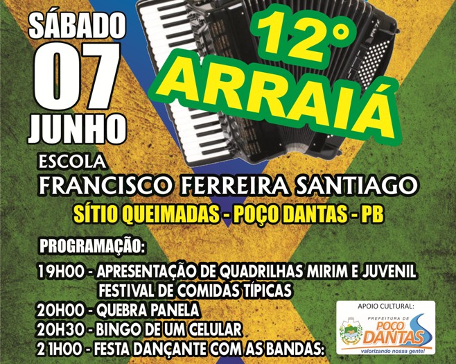 O tradicional Arraiá da escola aconterá no Sítio Queimadas, Zona Rural de Poço Dantas e será animado pelo Forró das Manas e Bonde Mexer. Veja tudo aqui!
