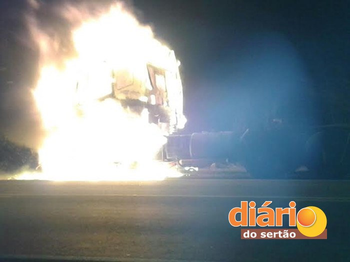 Uma guarnição dos bombeiros foi ao local, mas as chamas já haviam consumido todo o veículo que ficou destruído.