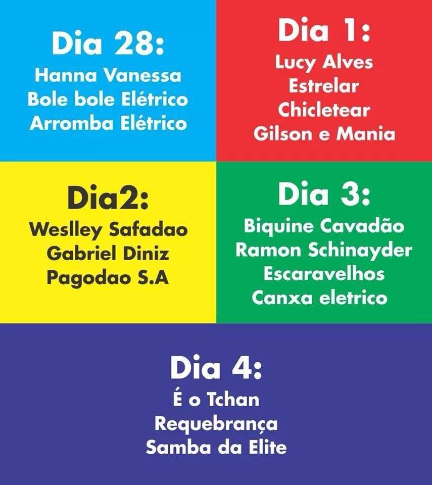 Com cinco dias de festa, 19 atrações passarão pelo corredor da folia. As atrações são para todos os gostos. Confira tudo!