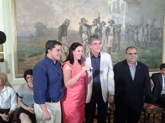 Cláudia Dias recebeu o novo transporte no Palácio da Redenção, onde o governador fez a entrega de 161 ônibus escolares para os municípios