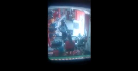 Veja as imagens do momento em que homem armado rende funcionária e assalta ‘mercadinho’ no Sertão da PB