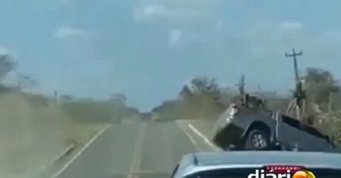 As imagens são chocantes e foram gravadas por uma pessoa em outro veículo que seguia atrás do automóvel do sacerdote