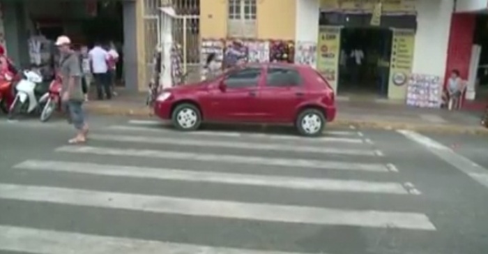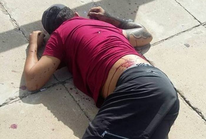 O carro atropelou a vítima que, ao cair no chão foi alvejada por disparos de arma de fogo.