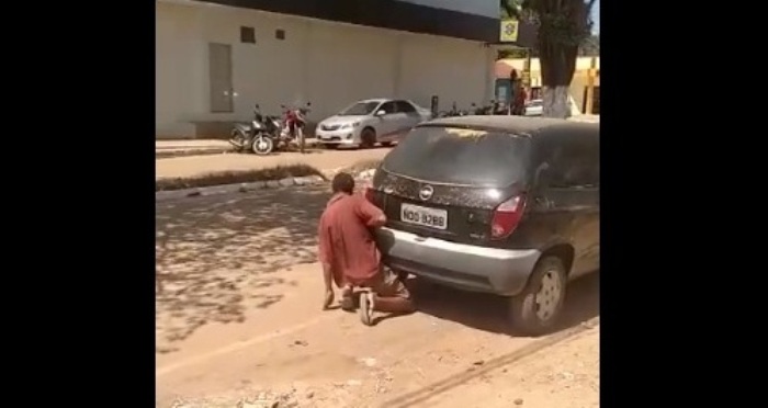 Um vídeo divulgado na rede social Facebook mostra o flagrante de um homem ‘fazendo sexo’ com um carro.