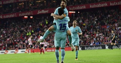 Em jogaço no San Mamés, craque argentino e volante brasileiro garantem vitória catalã por 2 a 0, e Barcelona vence pela nona vez em 10 jogos e segura vantagem para o segundo colocado Valencia