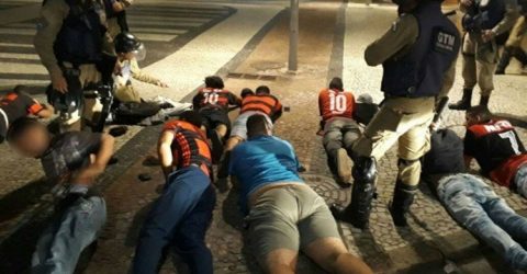 Torcida do Fla iniciou um grande tumulto em frente ao hotel em que o Independiente ficaria hospedado, na Barra.