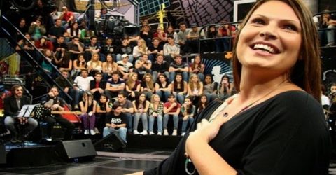 Cantando "Biquíni de Bolinha Amarelinha", clássico da jovem guarda, a pequena Mariah fez os técnicos e o público se derreterem com sua fofura