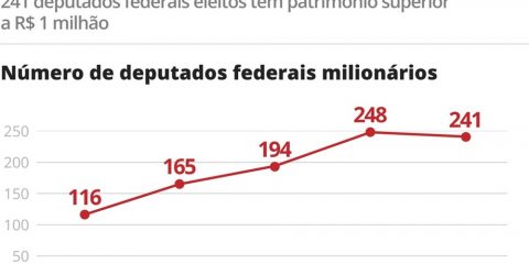 Número de deputados federais eleitos que declaram patrimônio superior a R$ 1 milhão é ligeiramente menor que o de 2014.