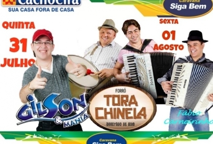 O grande evento contará com animação das bandas Gilson e Mania, Tora Chinelo e Fábio Carneirinho.
