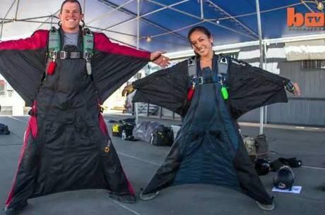 Bombeiro faz pegadinha com namorada e a pede em casamento durante salto de paraquedas