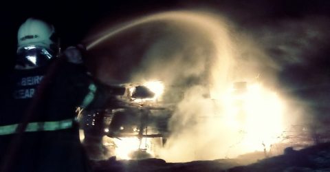 Uma equipe do Corpo de Bombeiros foi ao local para apagar as chamas.